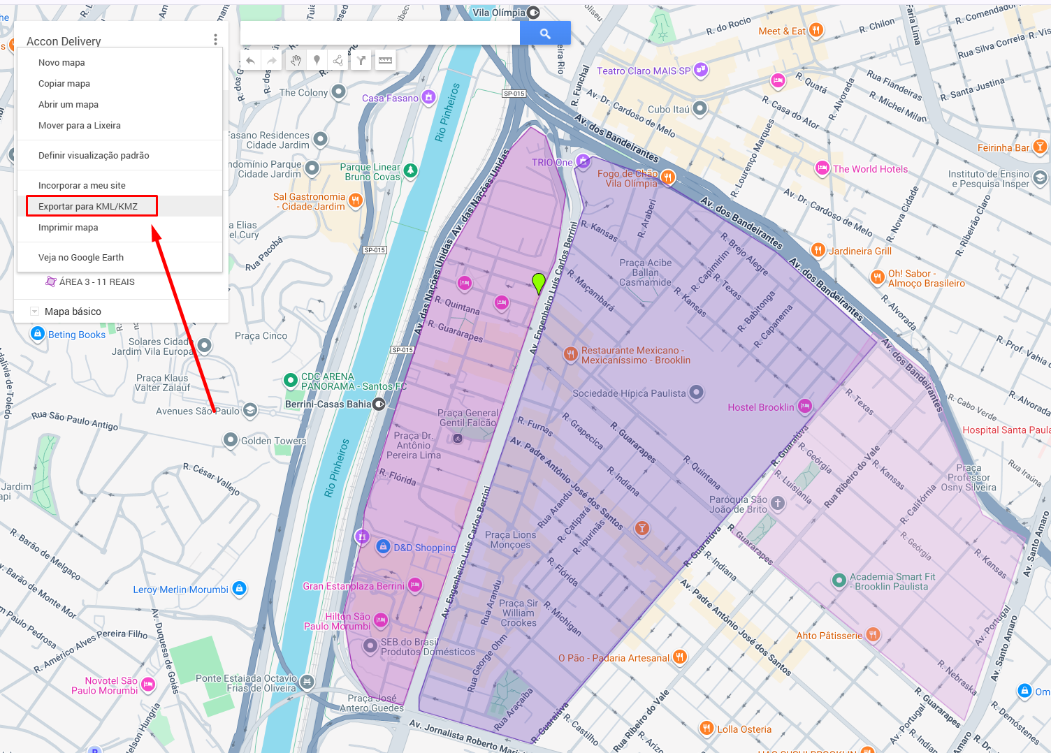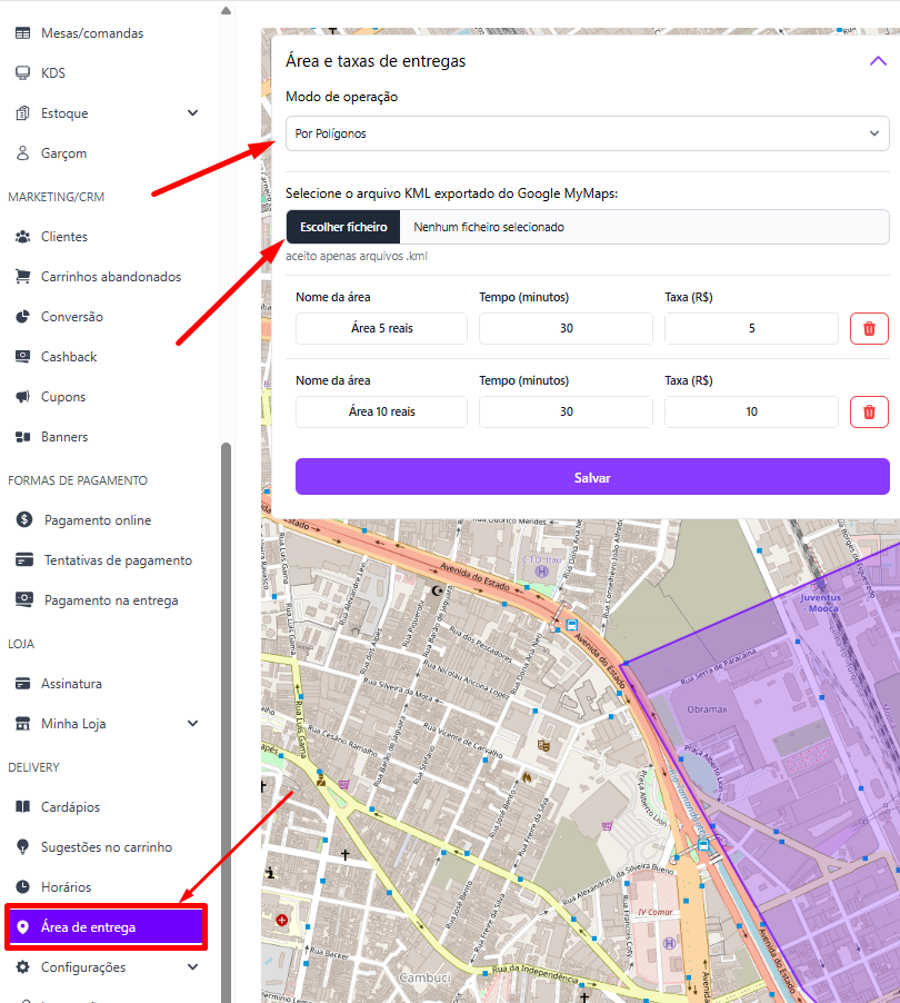 Configure a área de entrega por polígono (KML)