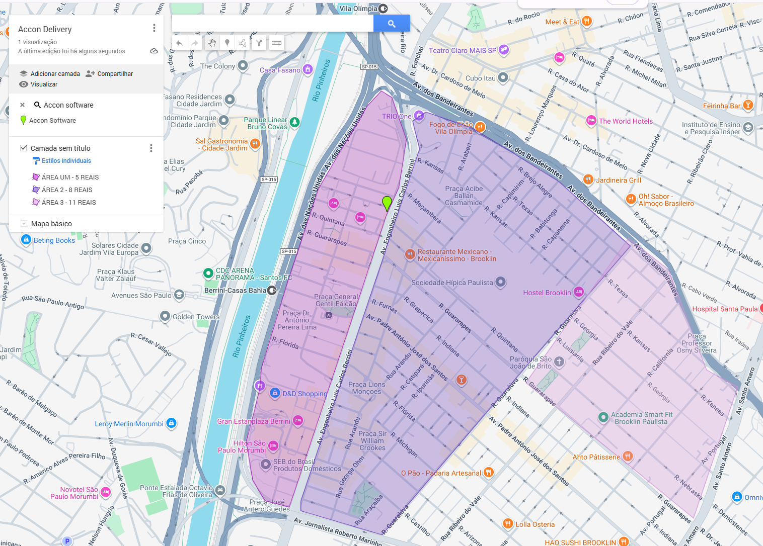 Delimite no mapa a área de entrega, marcando ponto a ponto até fechar o polígono.