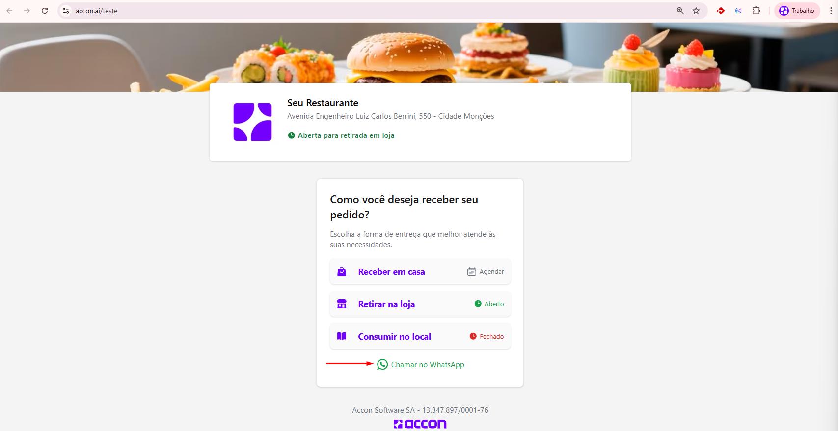 Link que o cliente acessa para visualizar o cardápio digital.