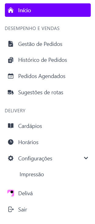 A seguir irei mostrar quais menus o usuário Gerente possui: