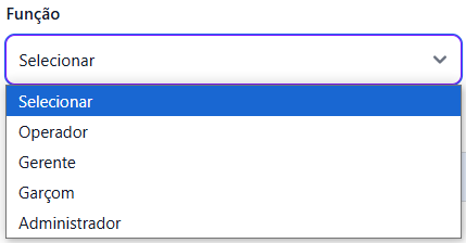 🔹 Função: Escolha qual será o tipo de acesso do funcionário.