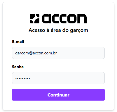 &#x20;O acesso para o garçom é feito através do link: <https://garcom.accon.ai/auth/login>