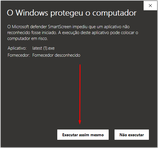 3️⃣ Após o download, dê dois cliques no arquivo para abrir. ⚠️ Caso apareça o aviso “O Windows protegeu o computador”, clique em Mais informações e depois em Executar assim mesmo.