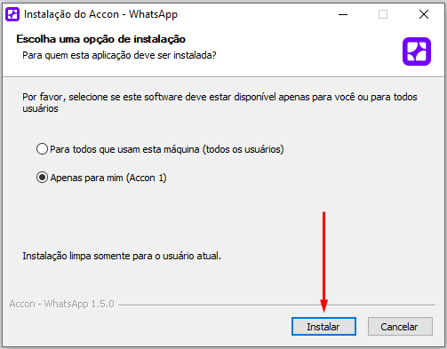 4️⃣ Com o instalador aberto, siga os passos: ✅ Clique em Instalar