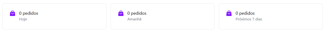 📅 Hoje → Pedidos agendados para o dia atual 📅 Amanhã → Pedidos programados para o dia seguinte 📆 Próximos 7 dias → Total de pedidos futuros na semana