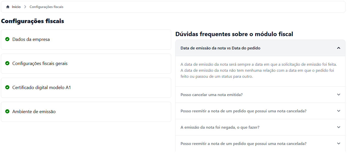 # Configurações fiscais