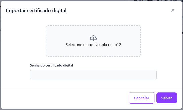 Envie o certificado digital e a senha de acesso.