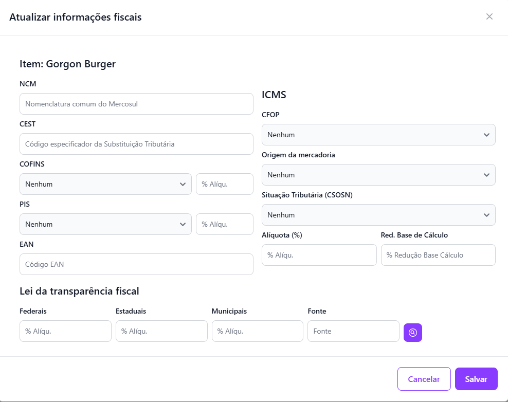🛠 Atualizar informações fiscais do item