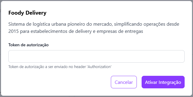 🔐 Insira o **Token de autorização** enviado pela equipe da Foody Delivery