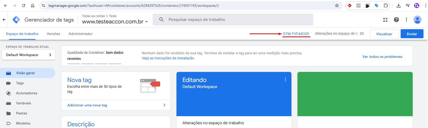 ● Copie o ID do Contêiner (exemplo: GTM-XXXXXXX)