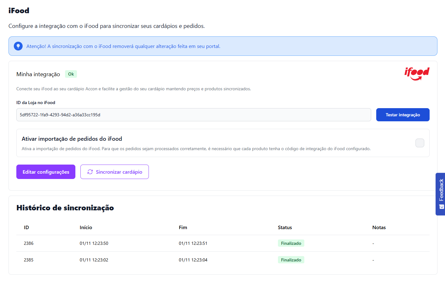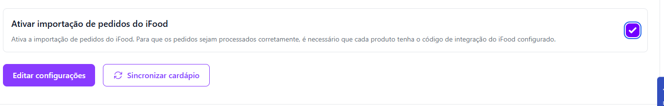 ## Importação de pedidos do iFood