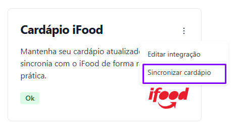 4. Clique em <mark style="color:$info;">Sincronizar Cardápio</mark><mark style="color:$primary;">.</mark>