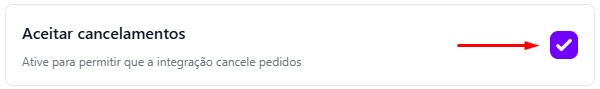 É importante deixar marcado para **Aceitar cancelamentos** na integração com a Eclética.