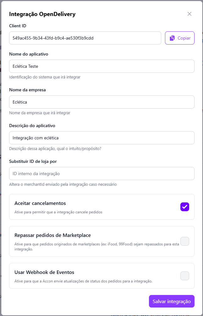 A integração com a Eclética permite conectar sua loja <mark style="color:purple;">**ACCON**</mark> a ferramentas externas, facilitando a automação e o gerenciamento de pedidos.