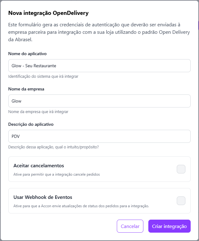 Após o envio das credenciais e configuração pela equipe da Glow, a integração será ativada.