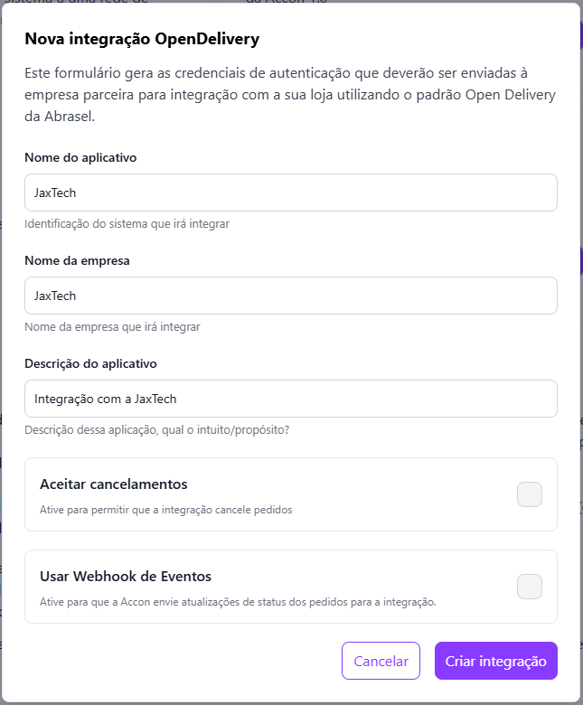 A integração com a JaxTech permite conectar sua loja <mark style="color:purple;">**ACCON**</mark> a ferramentas externas, facilitando a automação e o gerenciamento de pedidos.