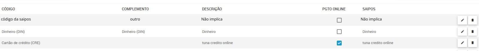 📌 Importante: Para que o pagamento seja considerado online, basta marcar a opção PGTO ONLINE na Saipos.