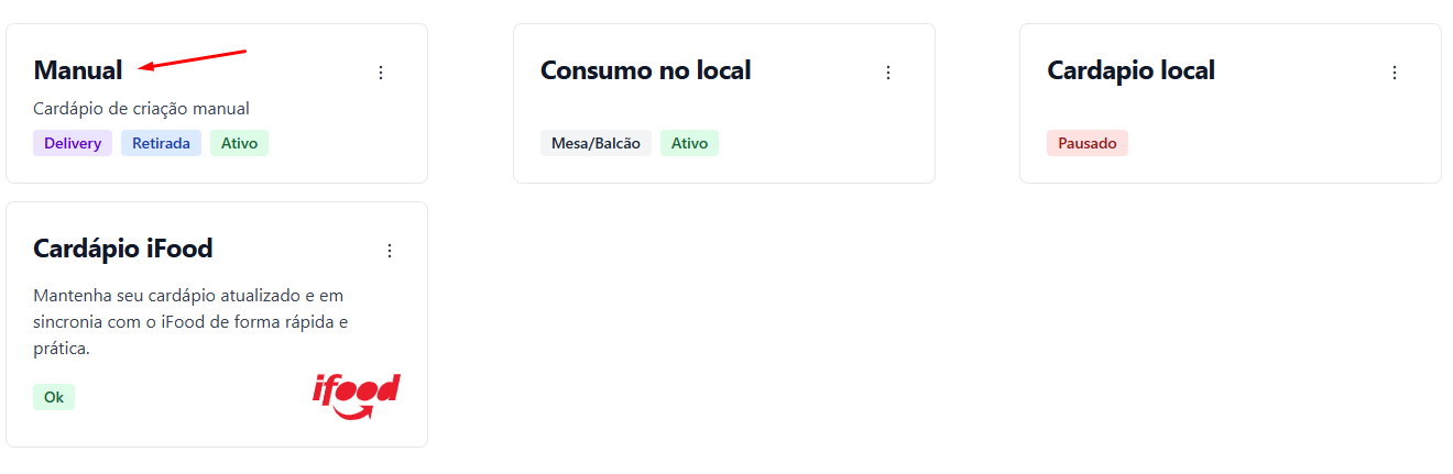 1️⃣ Acesse o menu **Cardápios**