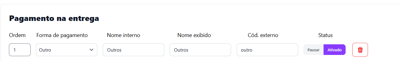 1️⃣ Acesse o menu **Pagamento na entrega**