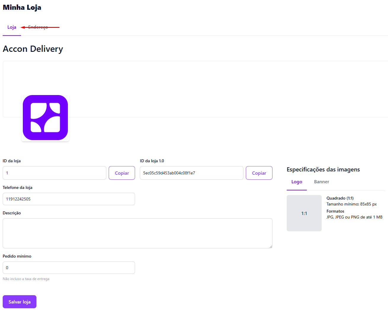 ✔️ Inserir a **logo** e o **banner** da sua loja\