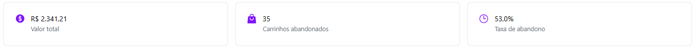 💰 Valor Total: Representa o valor perdido em carrinhos abandonados, de acordo com o filtro selecionado.