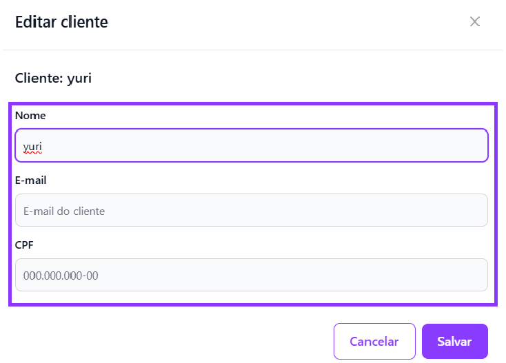 A função <mark style="color:purple;">**Editar**</mark> permite atualizar os dados cadastrais do cliente sempre que necessário.