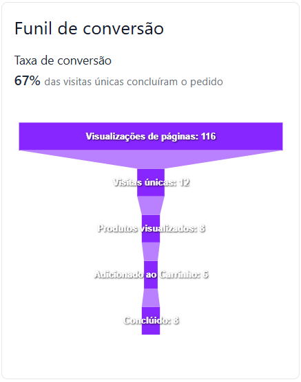 📊 Neste menu, você acompanha a <mark style="color:purple;">**taxa de conversão**</mark> do seu cardápio Accon, analisando o comportamento dos seus clientes por meio de um <mark style="color:purple;">**funil de conversão**</mark><mark style="color:purple;">.</mark>