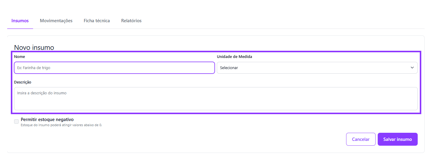 Gerenciar seus insumos corretamente é fundamental para manter o controle do estoque e garantir que seus custos estejam sempre atualizados.