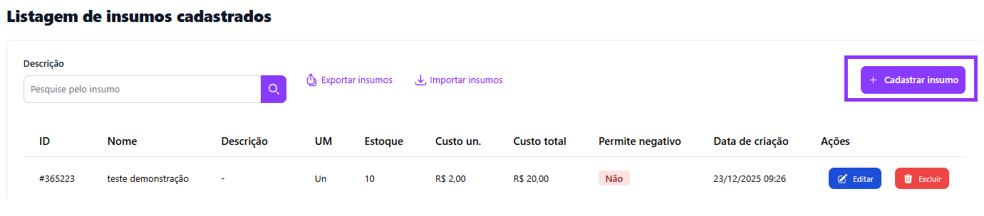 Gerenciar seus insumos corretamente é fundamental para manter o controle do estoque e garantir que seus custos estejam sempre atualizados.