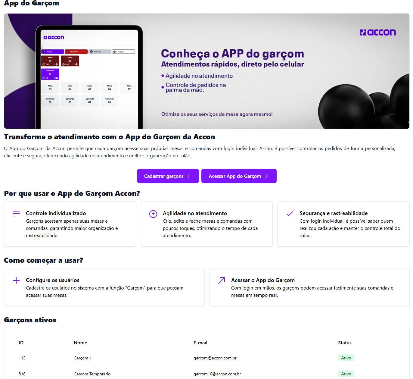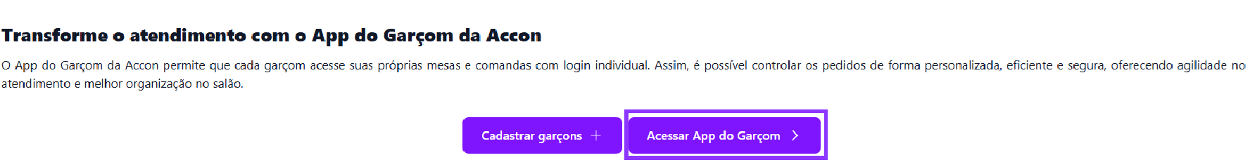 O <mark style="color:purple;">**App do Garçom**</mark> permite que o atendimento seja realizado de forma digital, organizada e individualizada.