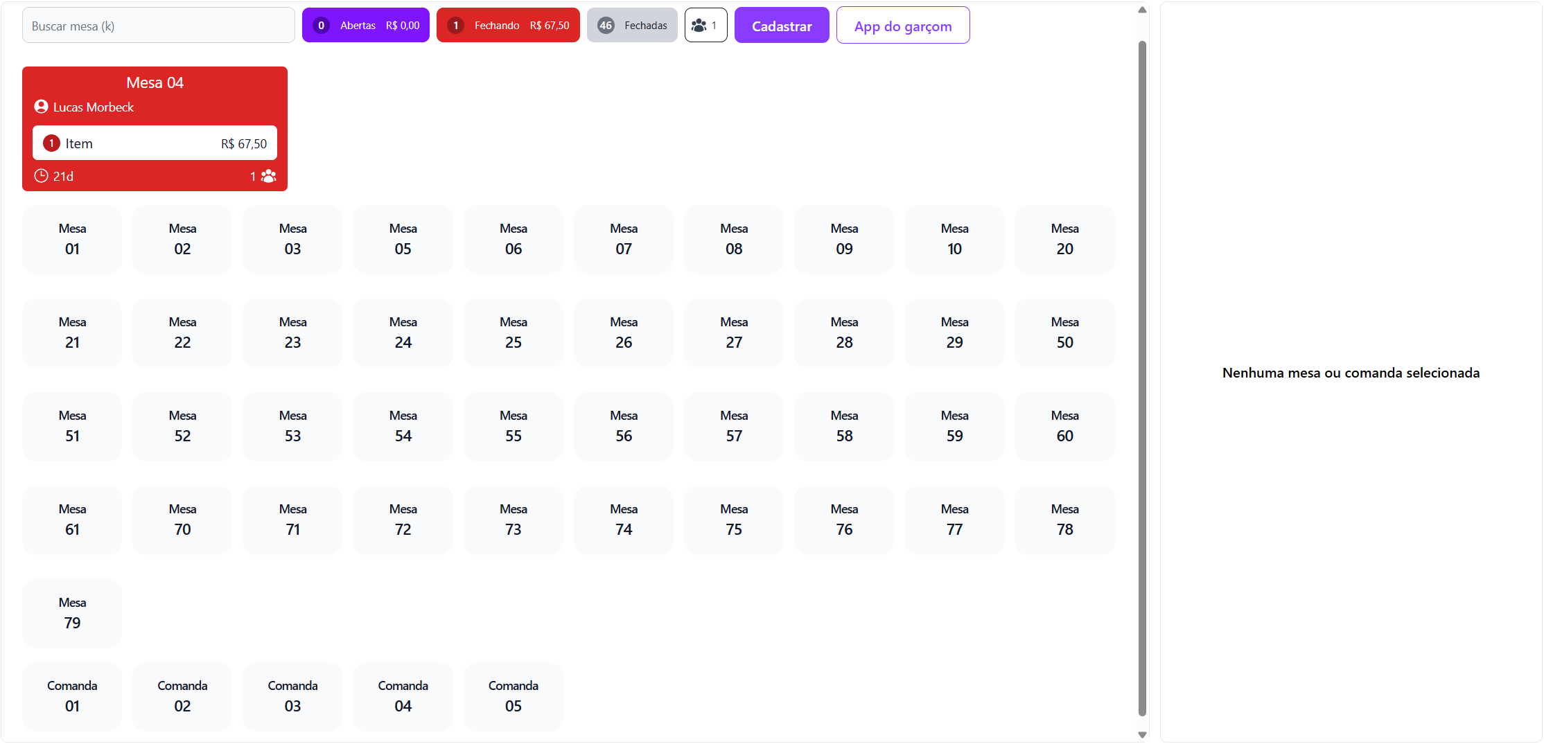 Mesas e Comandas