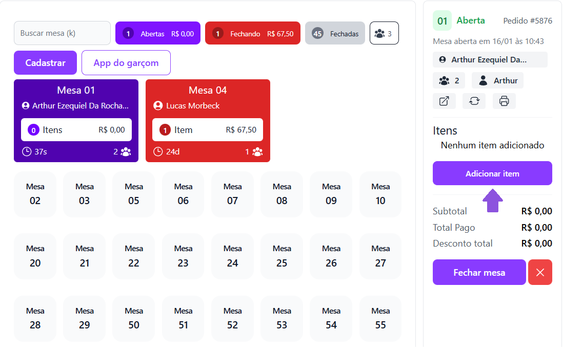 ### 🧾 Gerenciando Itens na Mesa ou Comanda